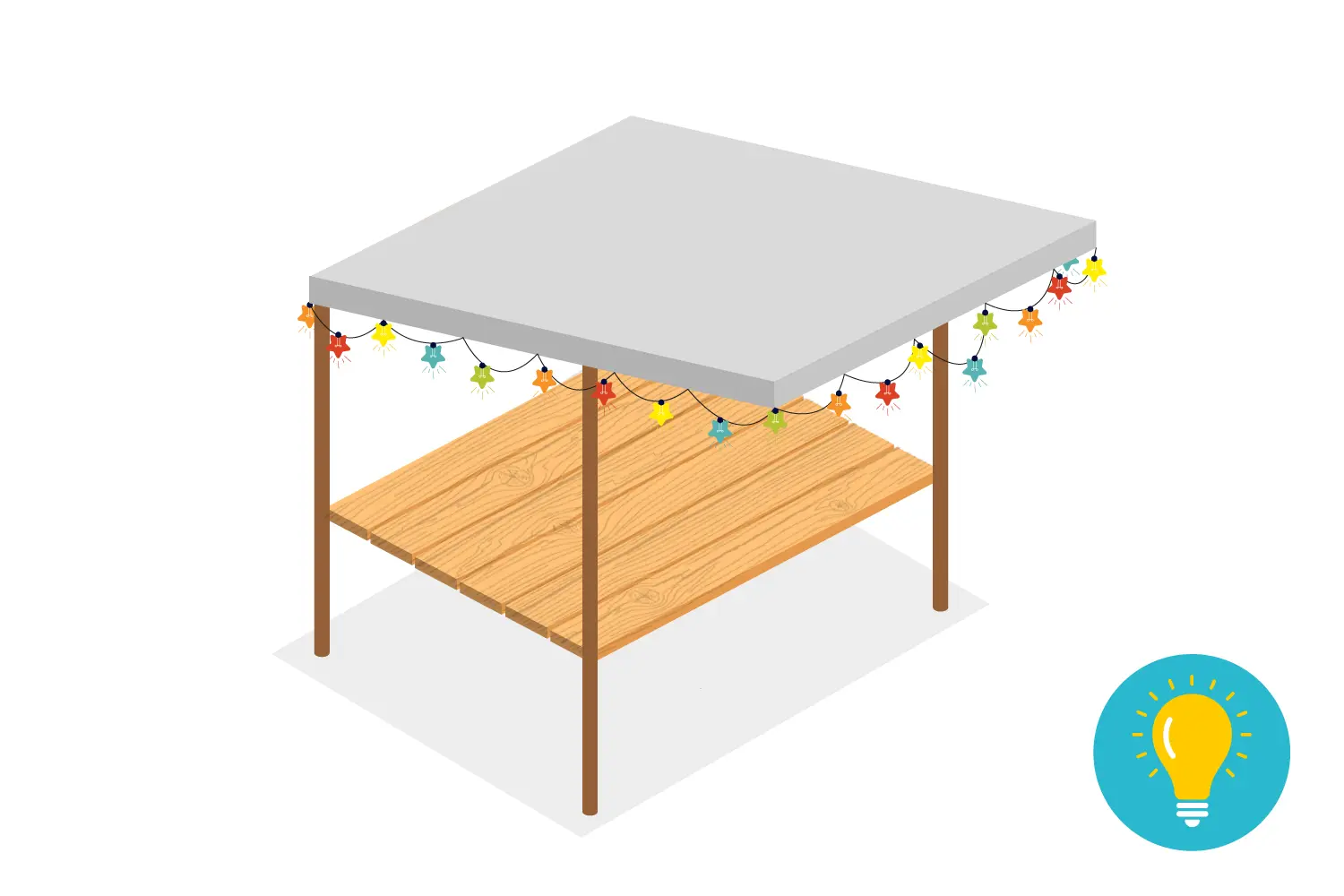 Du erhältst einen überdachten Marktstand mit einer Verkaufsfläche von ca. 2 x 0,9 m inkl. einer Ambientebeleuchtung über eine Lichterkette. Der Stand ist bereits fertig aufgebaut und steht am richtigen Platz.